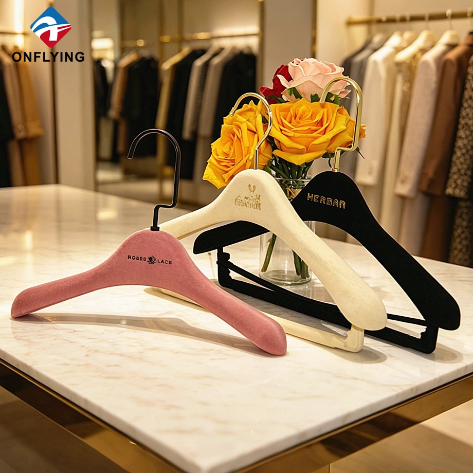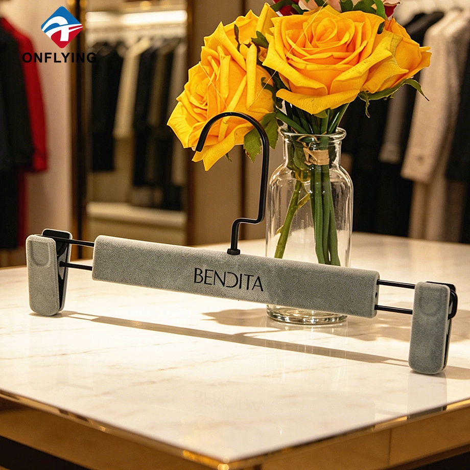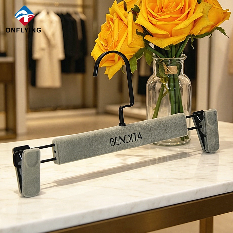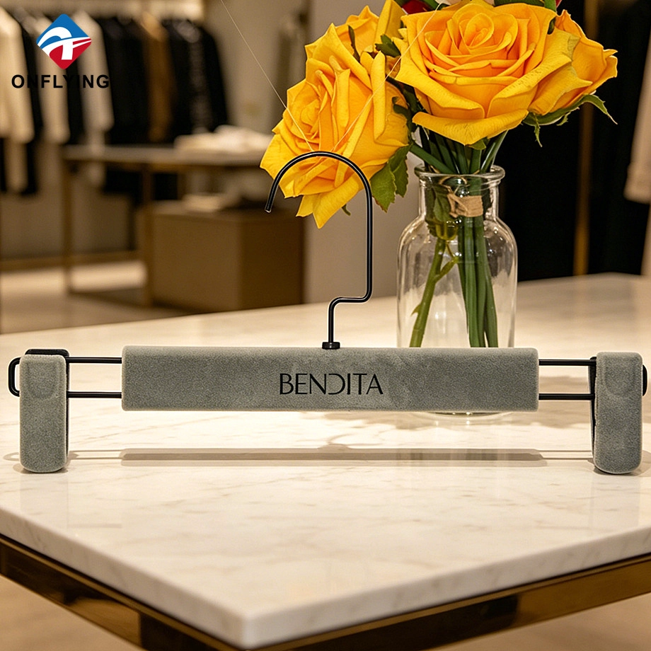 نحن Onflying Garment Accessories Industiral Limited هي أ الصين المخملية السراويل المعلق المورد، هذا الشعار المخصص للشماعات المخملية مخصص لتعليق الملابس.