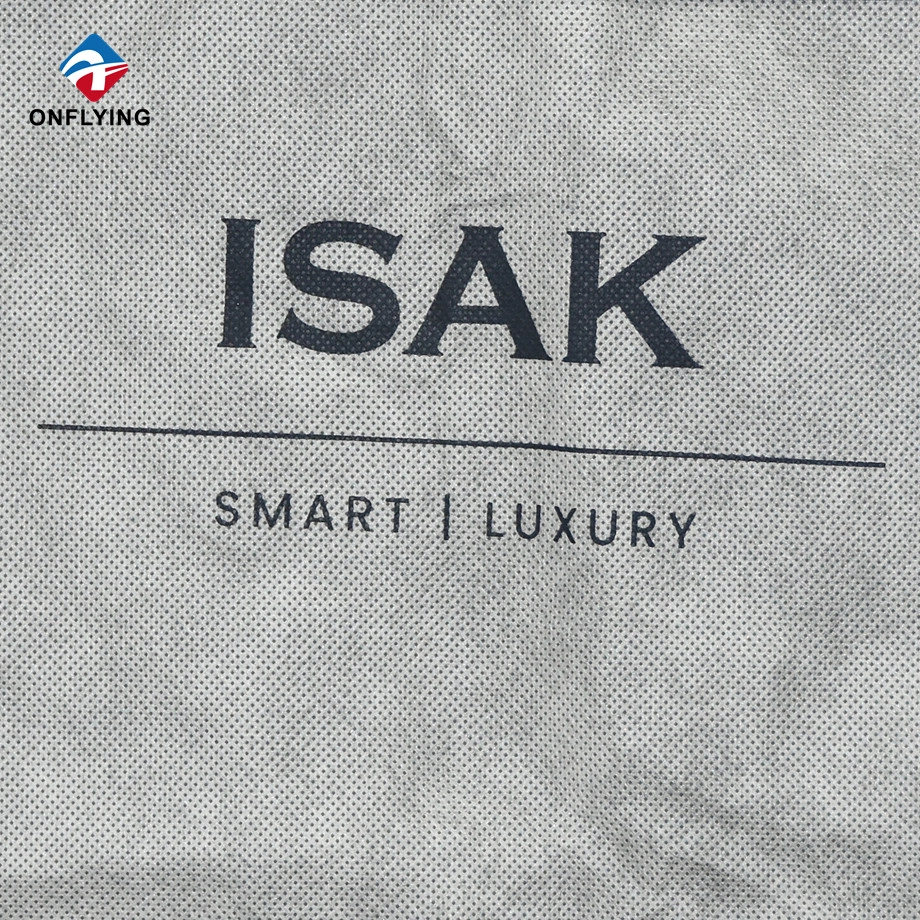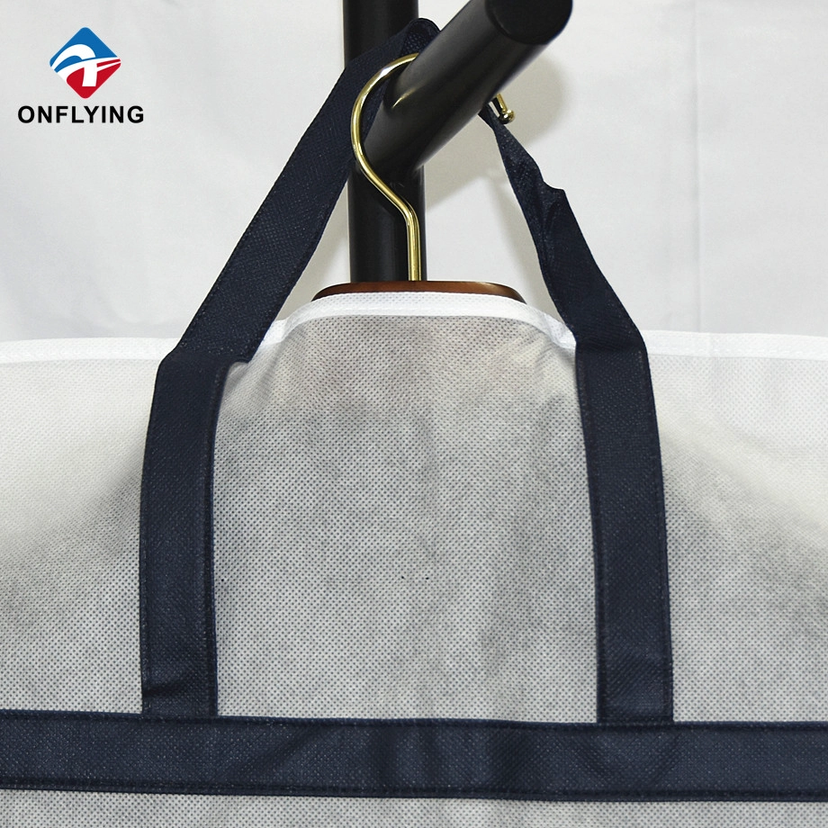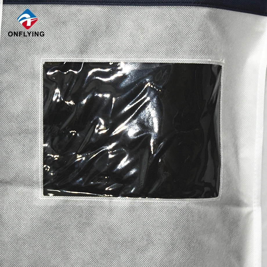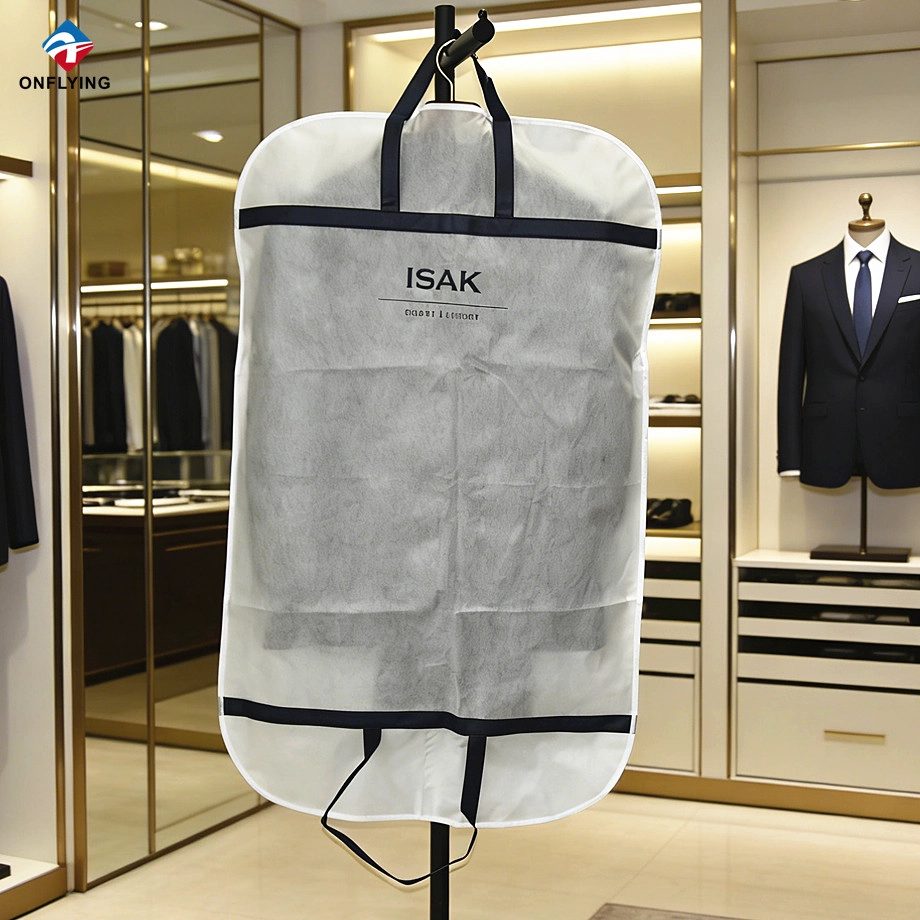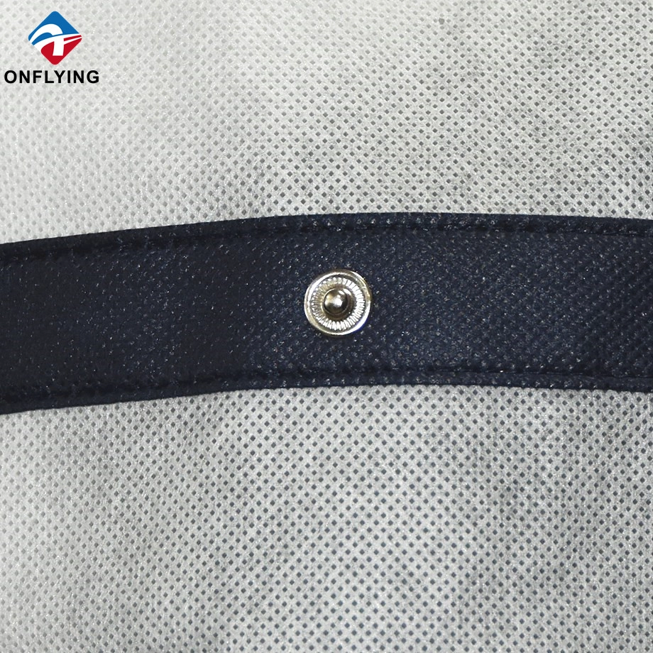 我们昂飞服装辅料实业有限公司是一家 中国西装包装套供应商,这款白色服装袋定制徽标套用于保护衣服。