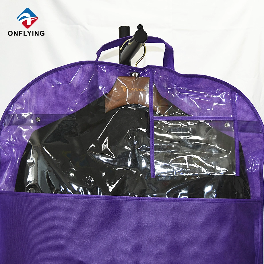 耐用服装包装紫色无纺布连衣裙旅行袋带透明窗口制造商中国 |