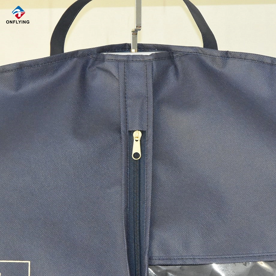 我们昂飞服装辅料实业有限公司是一家 西装衣套制造商,这款蓝色服装袋定制徽标套用于保护。