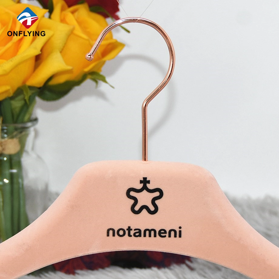 高品质豪华定制塑料粉色天鹅绒衣架带标志工厂中国 |