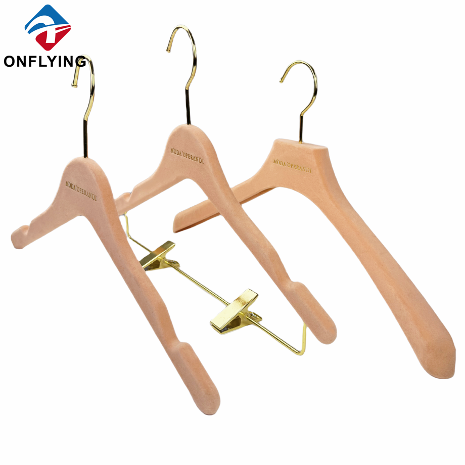 我们的工厂可以提供高端定制的天鹅绒衣架。 -