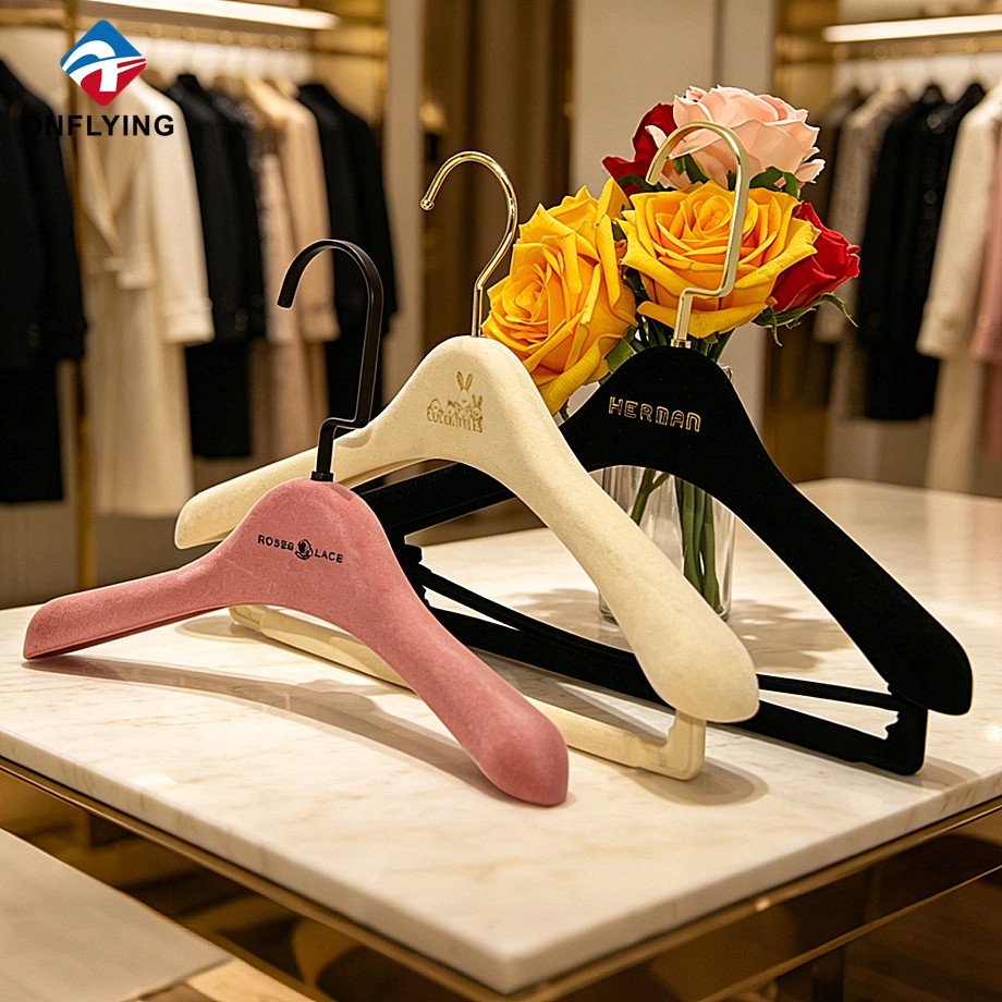 我们的工厂可以提供高端定制的天鹅绒衣架。 -