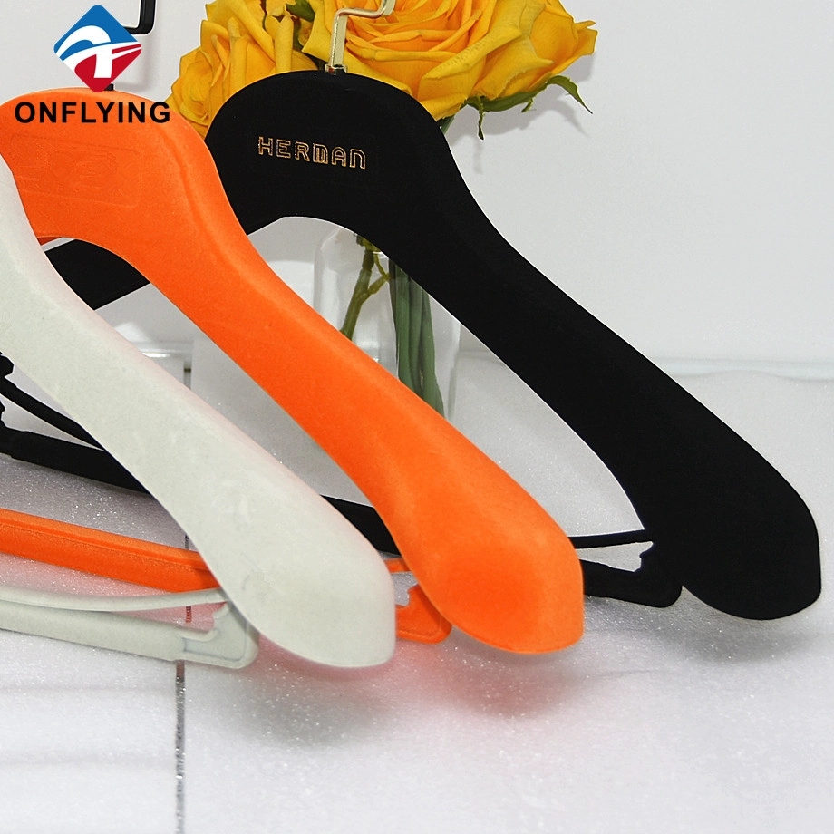 我们的工厂可以提供高端定制的天鹅绒衣架。 -