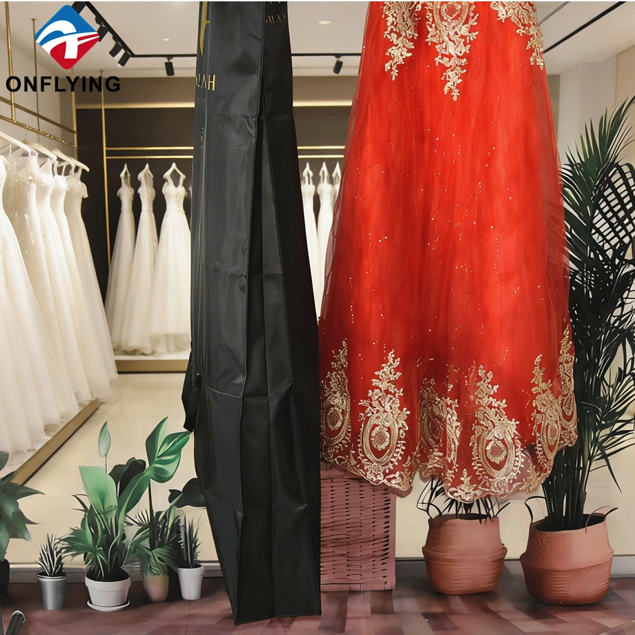 我们昂飞服装辅料实业有限公司是一家 中国婚礼封面供应商,这款婚纱袋定制徽标套用于保护衣服。