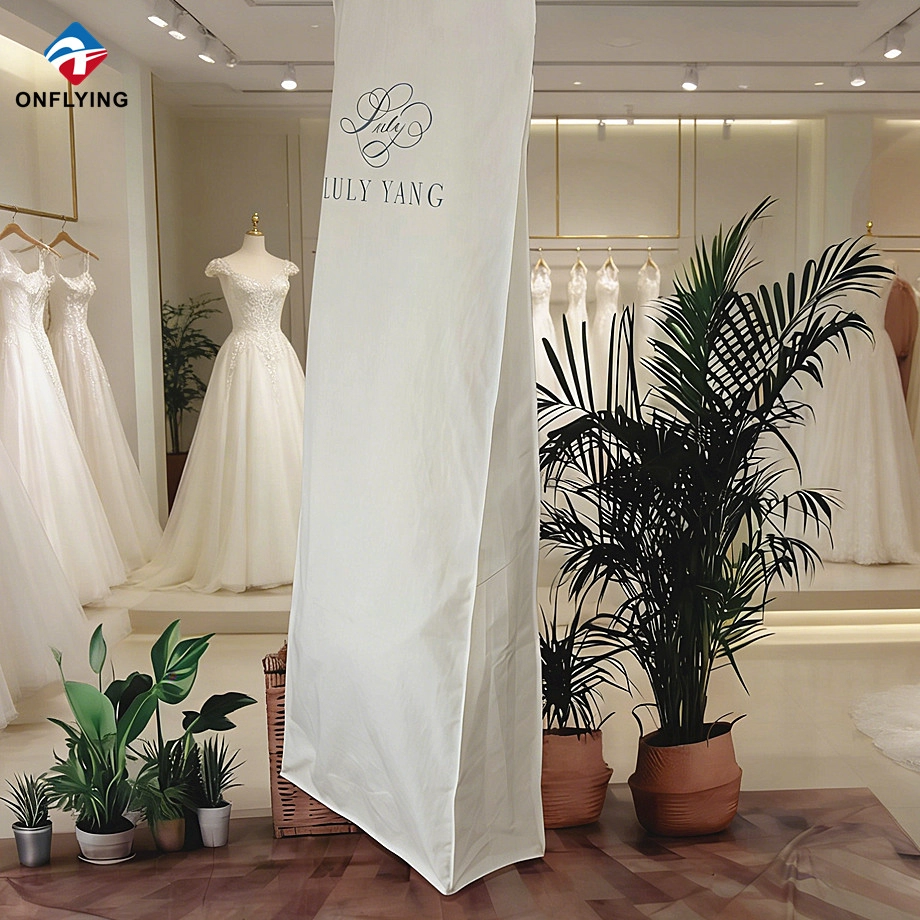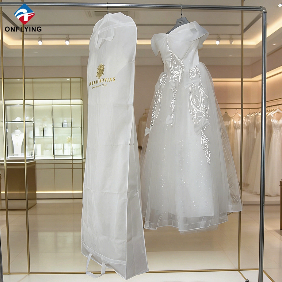 我们昂飞服装辅料实业有限公司是一家 中国婚礼包装袋制造商,这款婚纱袋定制徽标套用于保护衣服。