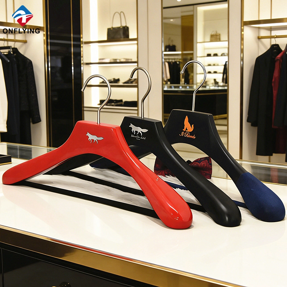 Wir sind eine professionelle Fabrik für maßgeschneiderte Kleiderbügel aus Holz in China, die sich auf hochwertige Kleiderbügel aus Massivholz für Luxusanzüge, Mäntel und maßgeschneiderte Kleidungsstücke spezialisiert hat. Mit breitem Schulterdesign, rutschfesten Samtstangen und stabilen, um 360° drehbaren Haken schützen unsere Kleiderbügel Anzugformen perfekt und werten die Ladenauslagen auf.