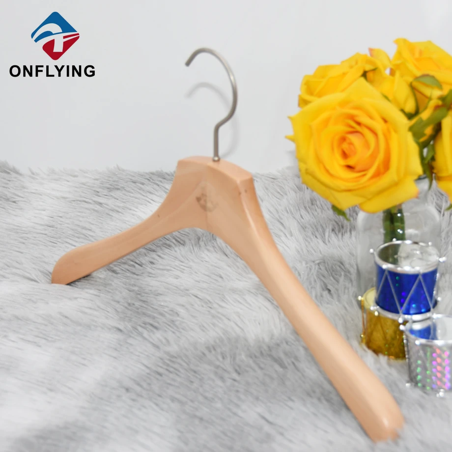 Nous, accessoires de vêtement Onflying Industiral Limited, sommes professionnels .Ces cintres en bois à crochet rond en nickel personnalisé de luxe sont destinés au stockage et à l'affichage des vêtements de veste de manteau.