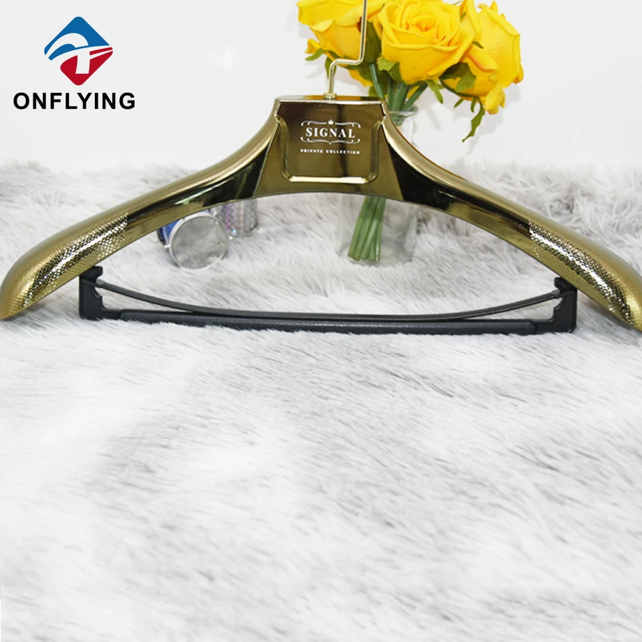 Nous, accessoires de vêtement Onflying Industiral Limited, sommes professionnels Cintres de costume en galvanoplastie, fournisseur chinois.Ces cintres de costume en galvanoplastie personnalisés de luxe à épaules larges et brillants sont destinés au stockage et à l'affichage des vêtements de manteau de costume.