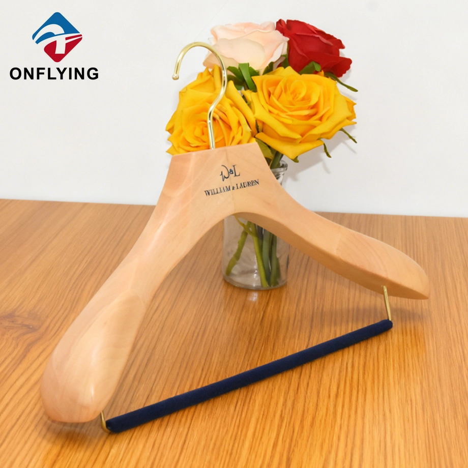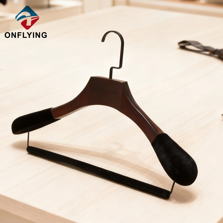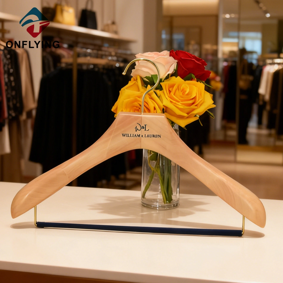 Nous, accessoires de vêtement Onflying Industiral Limited, sommes professionnels Ce cintre en bois avec logo personnalisé pour costume à épaule large et solide de luxe est destiné au stockage et à l'affichage des vêtements de manteau de costume.
