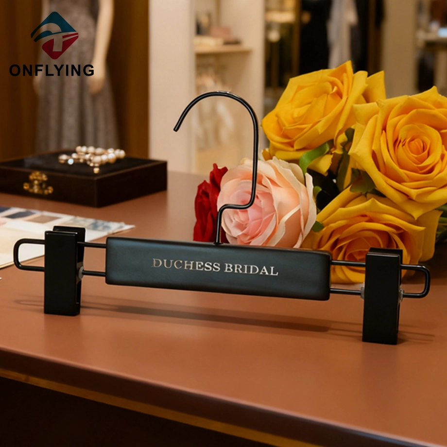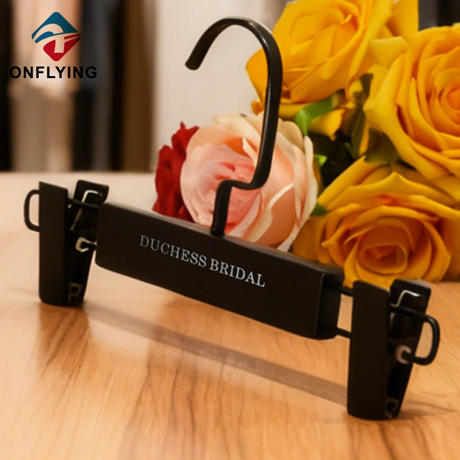 Nous, accessoires de vêtement Onflying Industiral Limited, sommes professionnels Ce solide élégant avec des clips solides réglables cintres pour pantalons noirs est destiné au stockage et à l'affichage de vêtements pour pantalons, pantalons, jeans, jupes.