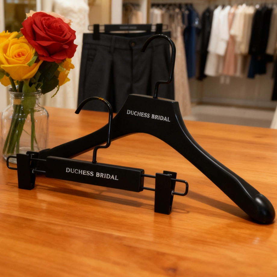 | Nom du produit | Ensemble de cintres en bois pour pantalons de manteau de marque personnalisée solide de luxe, fabrication chinoise |