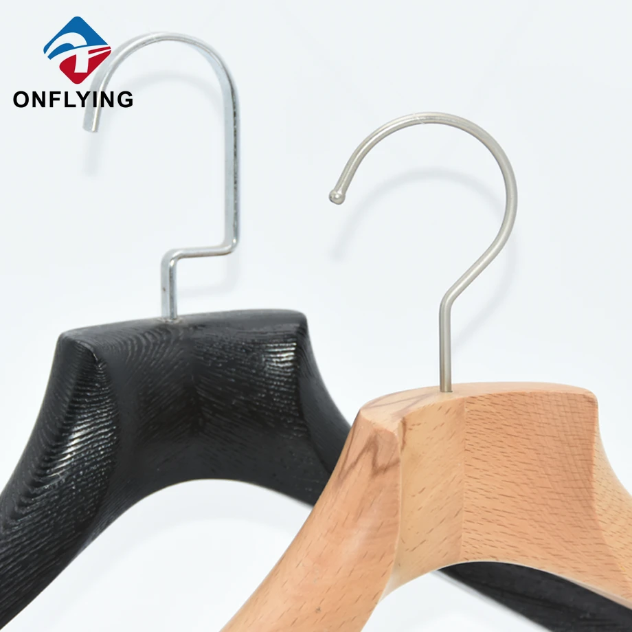 Nous, accessoires de vêtement Onflying Industiral Limited, sommes professionnels Cet ensemble de cintres en bois de frêne de hêtre de luxe pour vêtements à larges épaules est destiné au stockage et à l'affichage des vêtements de manteau.