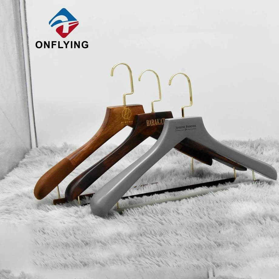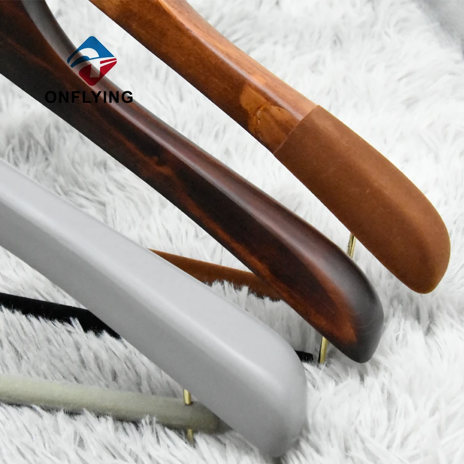 大量のウッドハンガーが終了しようとしています。それは、カスタムロゴを備えた肩にnonslipベルベットを備えた木製のスーツハンガーです。 -