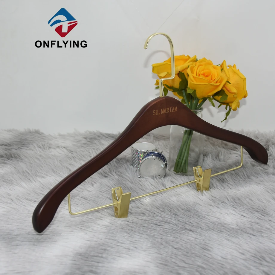 大量のウッドハンガーが終了しようとしています。それは、カスタムロゴを備えた肩にnonslipベルベットを備えた木製のスーツハンガーです。 -