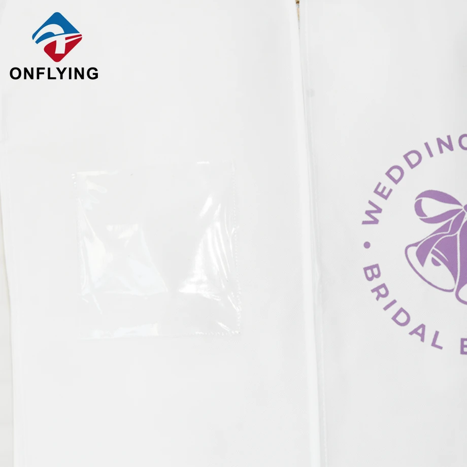 私たちオンフライング ガーメント アクセサリー インダストリアル リミテッドはプロフェッショナルです 中国ガーメントバッグ工場。このカスタムロゴ不織布ホワイトウェディングドレスガウンガーメントバッグは、ウェディングドレス、ガウン、イブニングドレスの保管とドレスの保護に使用します。