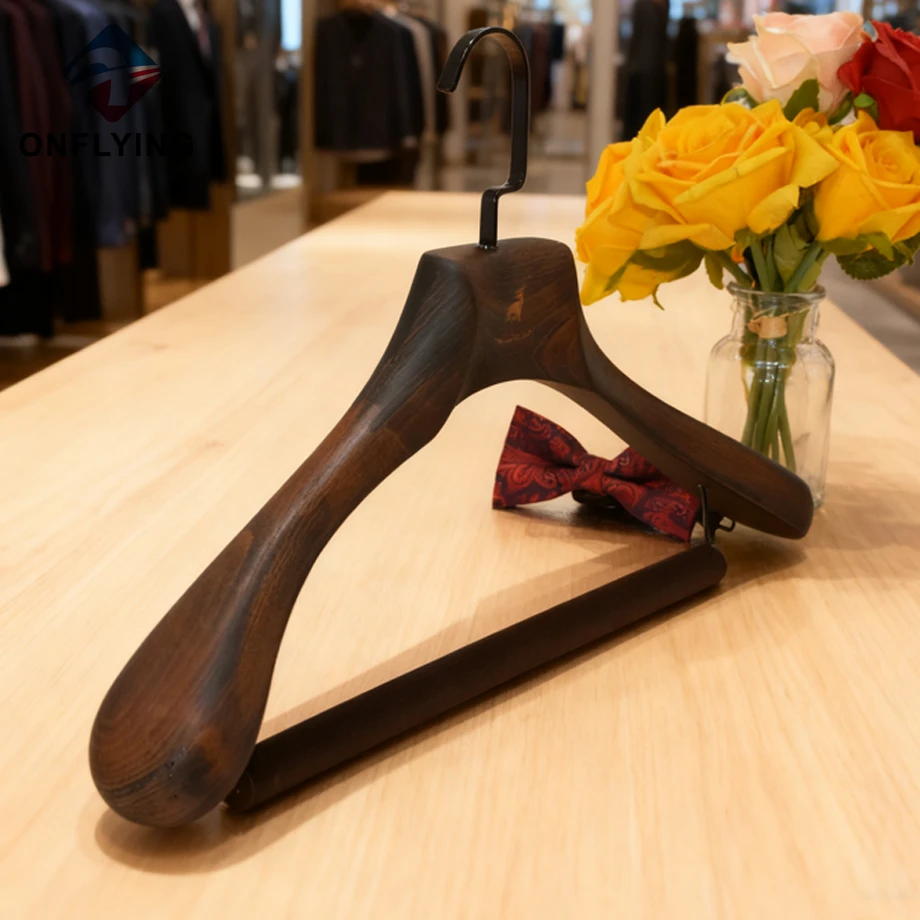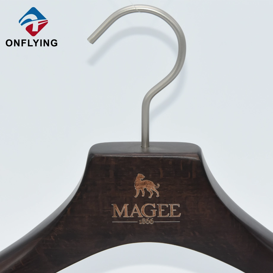 私たちオンフライング ガーメント アクセサリー インダストリアル リミテッドはプロフェッショナルです このカスタムラウンドフック植毛バースーツ木製滑り止めハンガーは、スーツコート衣類の保管と展示用です。