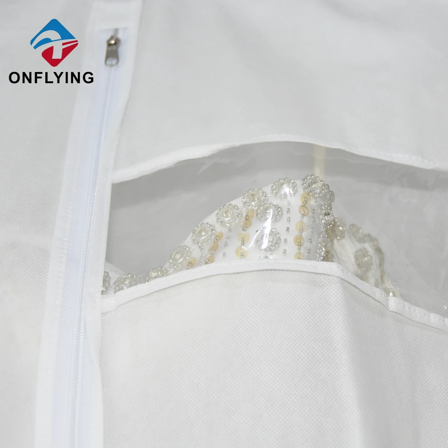 衣服アクセサリーインドゥスティラルリミテッドはプロフェッショナルです 中国の高級袋工場。このカスタムホワイトエコフレンドリーな再利用可能な女性の長いイブニングドレス豪華なバッグ ウェディングドレスの保管と保護のためです。