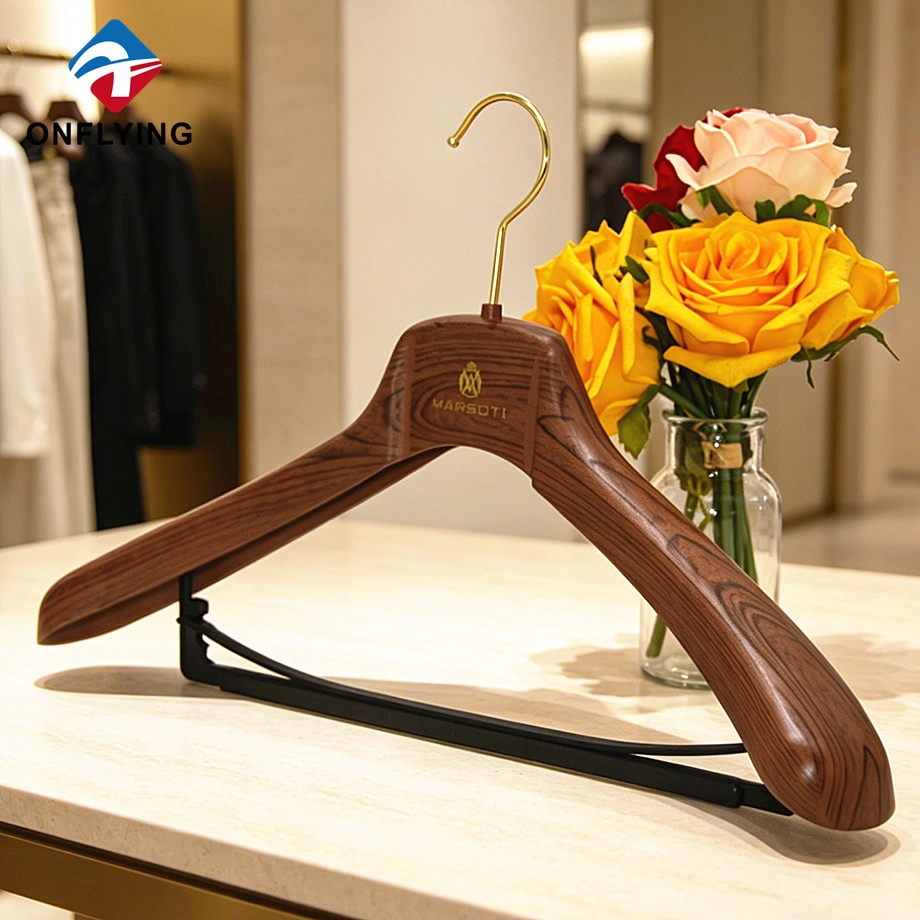 大量のウッドハンガーが終了しようとしています。それは、カスタムロゴを備えた肩にnonslipベルベットを備えた木製のスーツハンガーです。 -