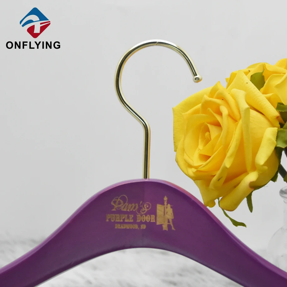 私たちオンフライング ガーメント アクセサリー インダストリアル リミテッドはプロフェッショナルです この絶妙な高級ブランドのカスタマイズされた紫色の木製ハンガーセットは、コート、ジーンズ、パンツ、スカート、ズボンの衣類の保管と展示に最適です。