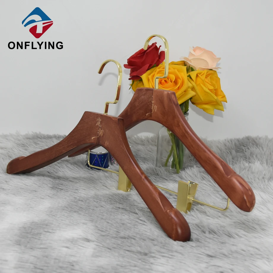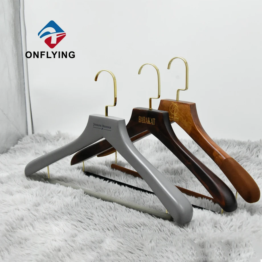大量のウッドハンガーが終了しようとしています。それは、カスタムロゴを備えた肩にnonslipベルベットを備えた木製のスーツハンガーです。 -