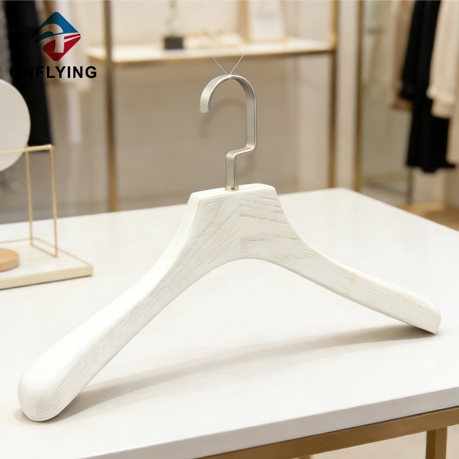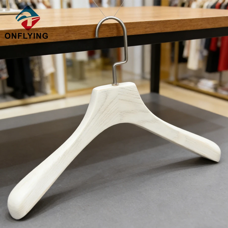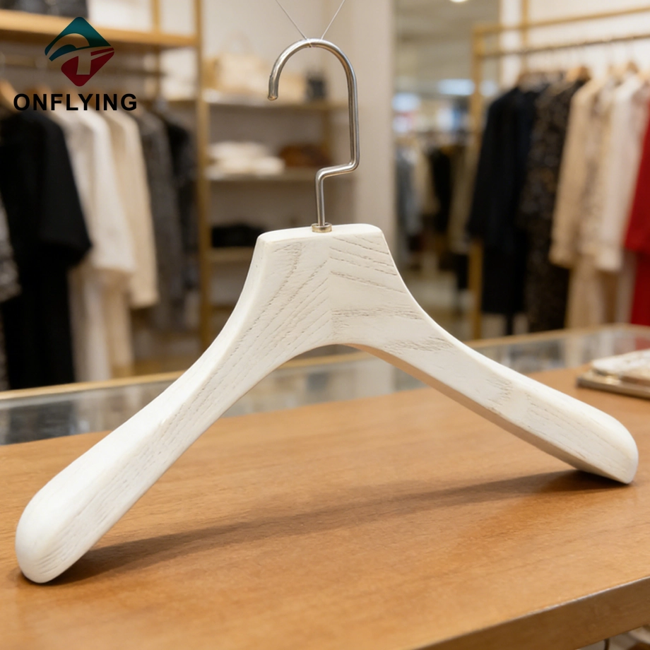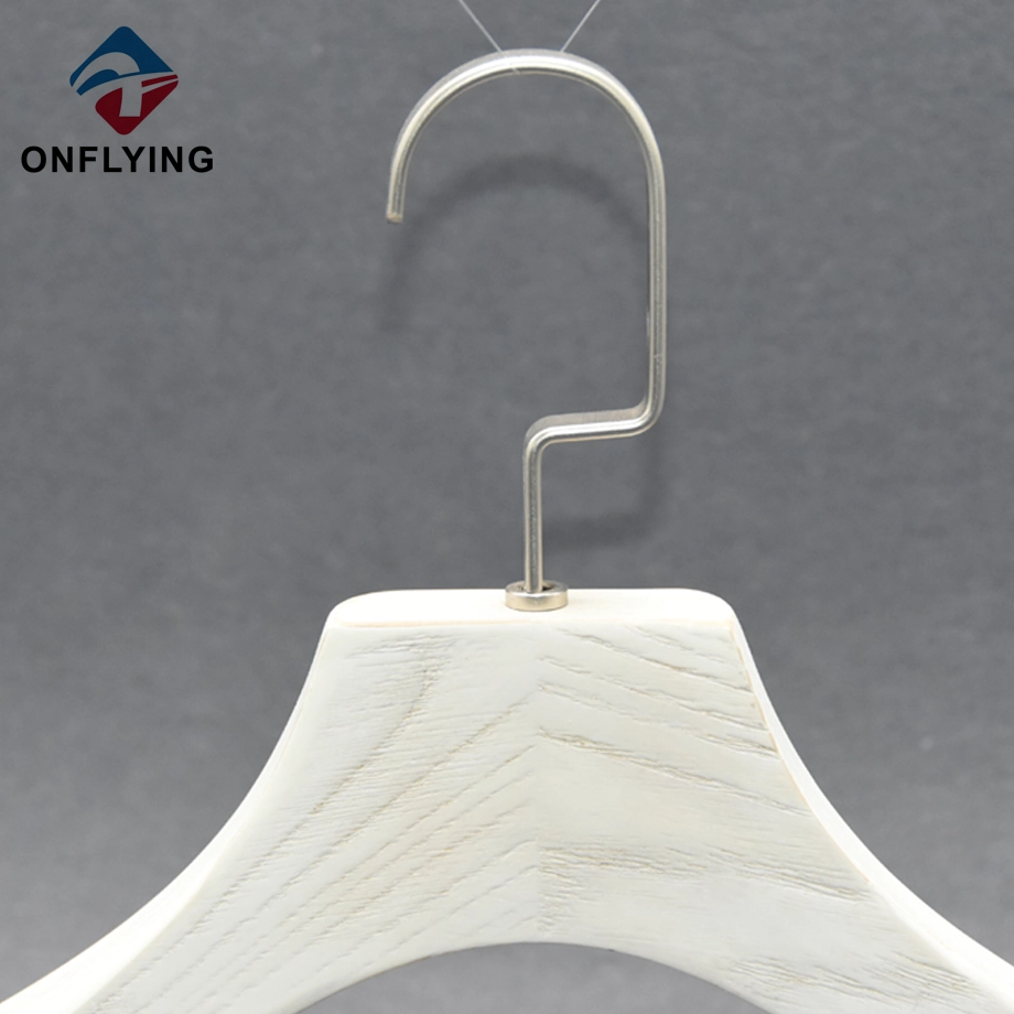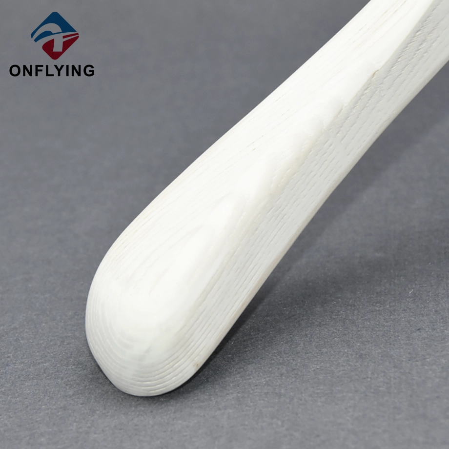 私たちオンフライング ガーメント アクセサリー インダストリアル リミテッドはプロフェッショナルです Ashtree 木製ハンガー中国サプライヤーこの高耐久のミニマリストデザインのコート衣類ホワイトアッシュツリー木製ハンガーは、コートブレザージャケット衣類の保管と展示に最適です。
