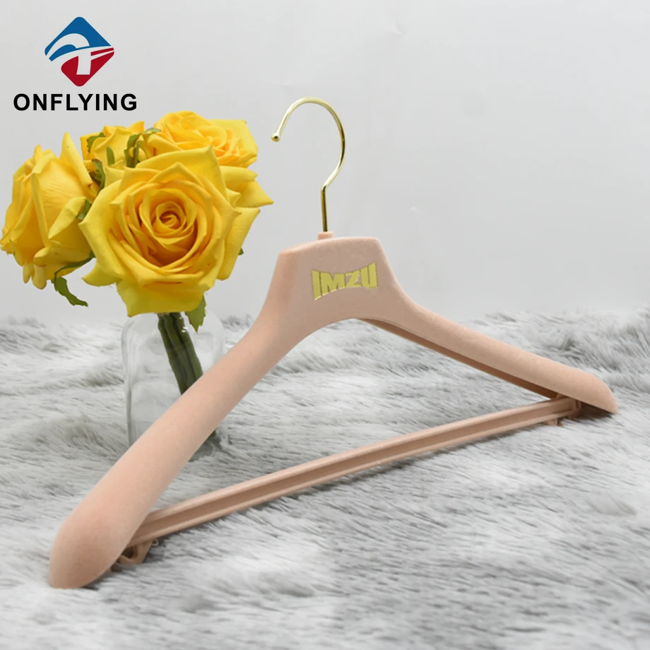 私たちオンフライング ガーメント アクセサリー インダストリアル リミテッドはプロフェッショナルです ベルベット ハンガー セット中国メーカー このホットセールの高級カスタムロゴコートスーツベルベットハンガーセットは、スーツコートパンツの衣類の保管と展示に最適です。
