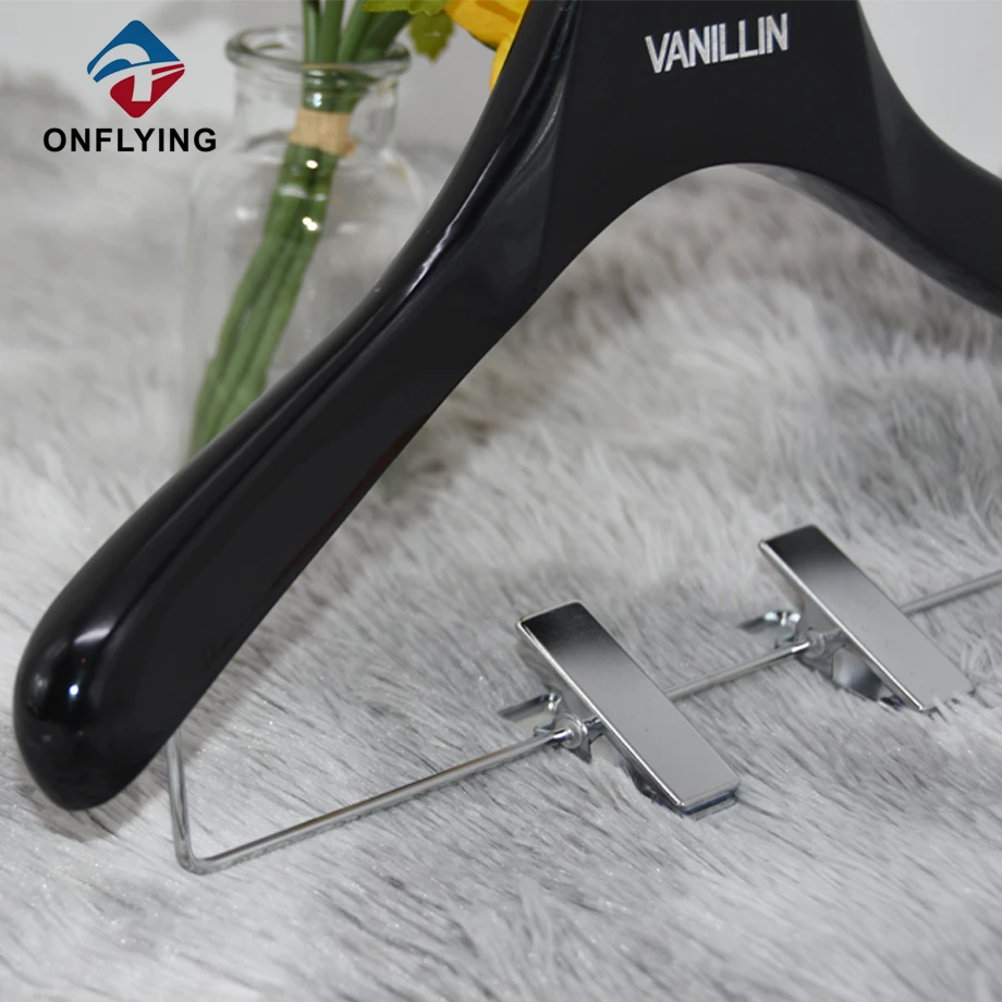 衣服アクセサリーインドゥスティラルリミテッドはプロフェッショナルです この熱い販売光沢のある黒い豪華な木製ハンガーは、コートジャケットブレザーパンツスカートの服の保管と展示です。