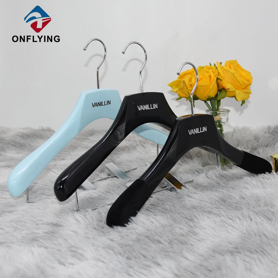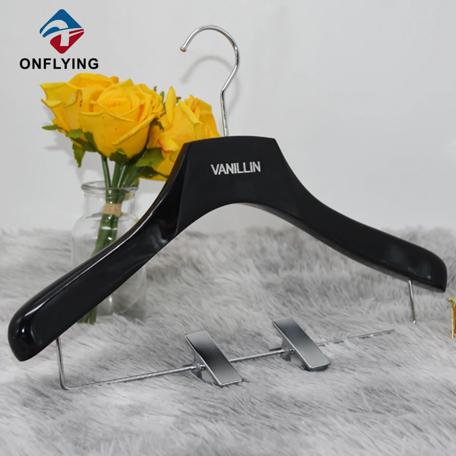 服用のホットセラーの光沢のある黒い豪華な木製ハンガー中国のサプライヤー