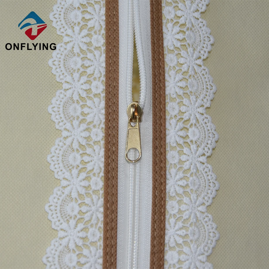 衣服アクセサリーインドゥスティラルリミテッドはプロフェッショナルです 中国のカスタムバッグ工場。ガセットブライダルロングウェディングガウンカスタムバッグを添えたこの豪華なクリーミー ウェディングドレスの保管と保護のためです。