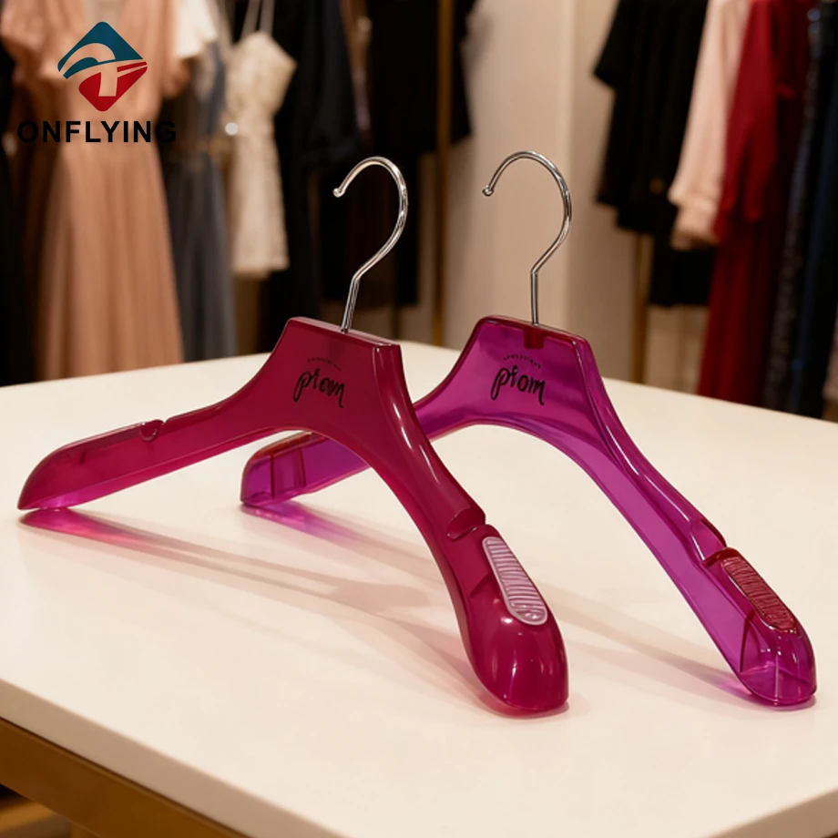 私たちオンフライング ガーメント アクセサリー インダストリアル リミテッドはプロフェッショナルです カスタム衣類ハンガー中国サプライヤーこの高級レディースドレスガウンブライダルカスタム衣類ハンガーは、ドレスブレザー、コート、ジャケットの衣類の保管と展示に最適です。