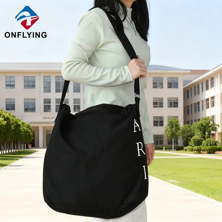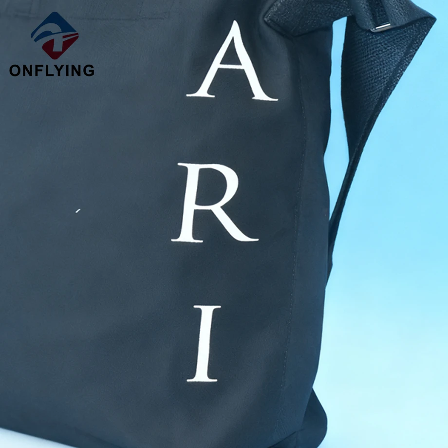 私たちオンフライング ガーメント アクセサリー インダストリアル リミテッドはプロフェッショナルです 中国キャンバスショッピングバッグ工場。この高級オーガニックカスタム耐久性のあるブラックキャンバスショッピングバッグは、スーパーマーケット、市場、店舗ショッピング、広告用です。