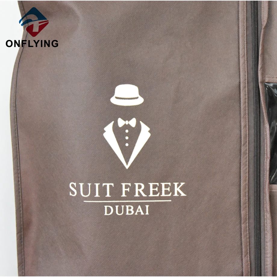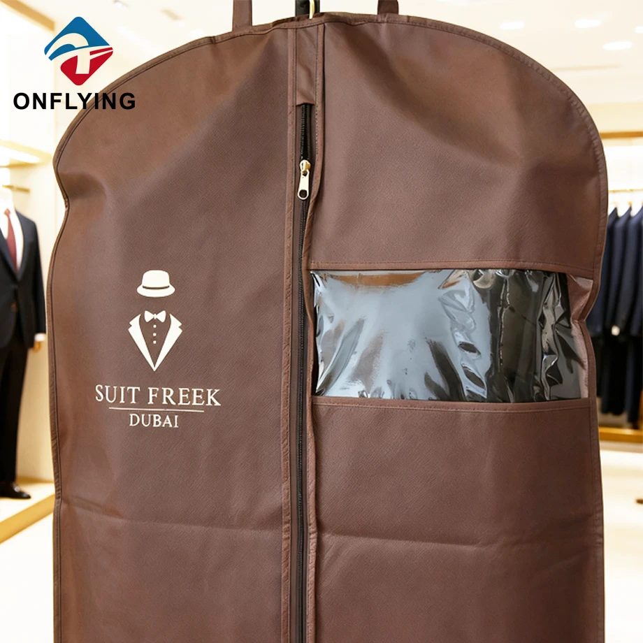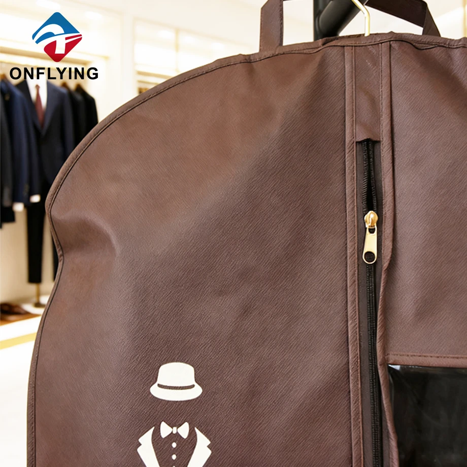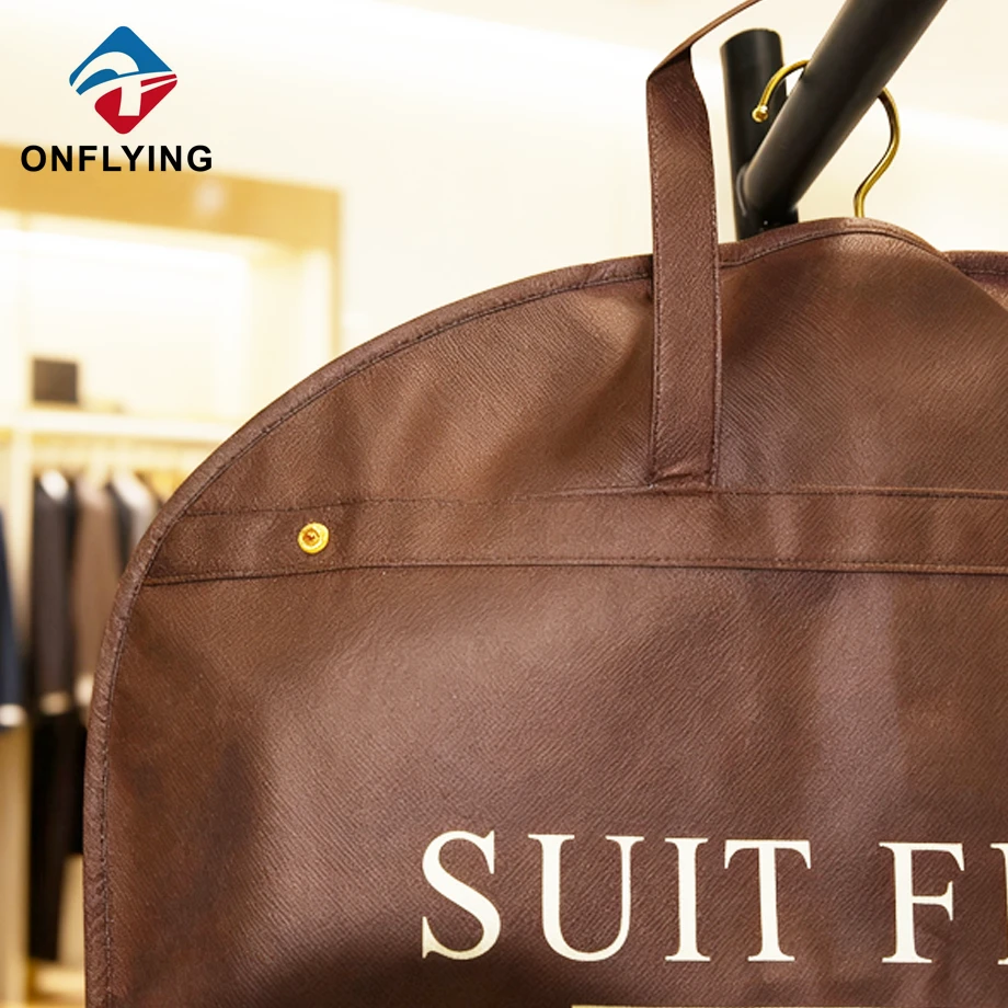 私たちオンフライング ガーメント アクセサリー インダストリアル リミテッドはプロフェッショナルです 中国スーツダストバッグ工場。この高級な再利用可能な旅行用男性用ブラウン不織布スーツダストバッグは、スーツの保管と保護に使用されます。