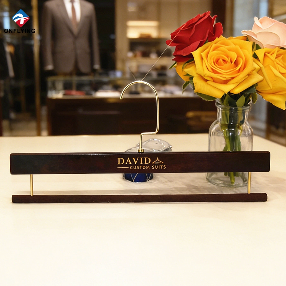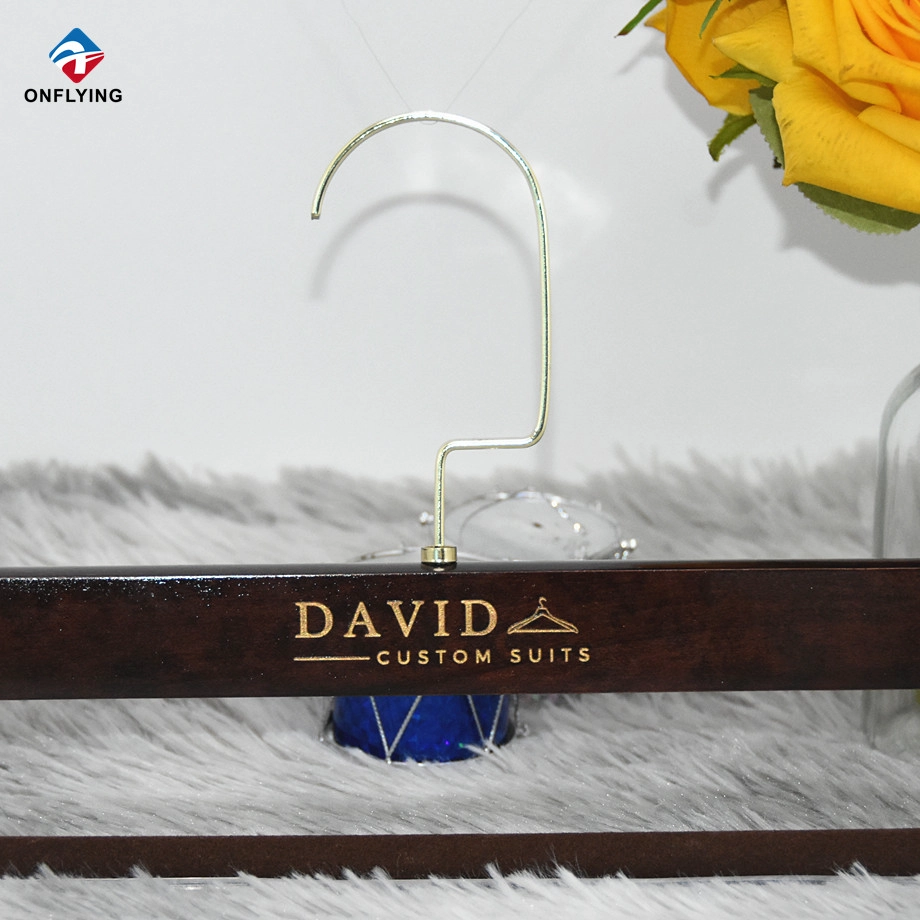 私たちオンフライング ガーメント アクセサリー インダストリアル リミテッドは、 中国の木製パンツ ハンガー サプライヤー, この木製ハンガー Custom Logo は衣類を掛けるためのものです。