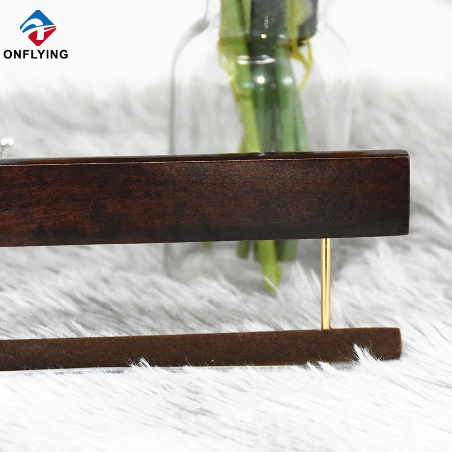 ベルベットバー付きプレミアムカスタムブラウンロータスウッドパンツハンガーサプライヤー中国 |