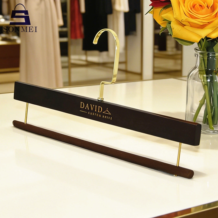 ベルベットバー付きプレミアムカスタムブラウンロータスウッドパンツハンガーサプライヤー中国