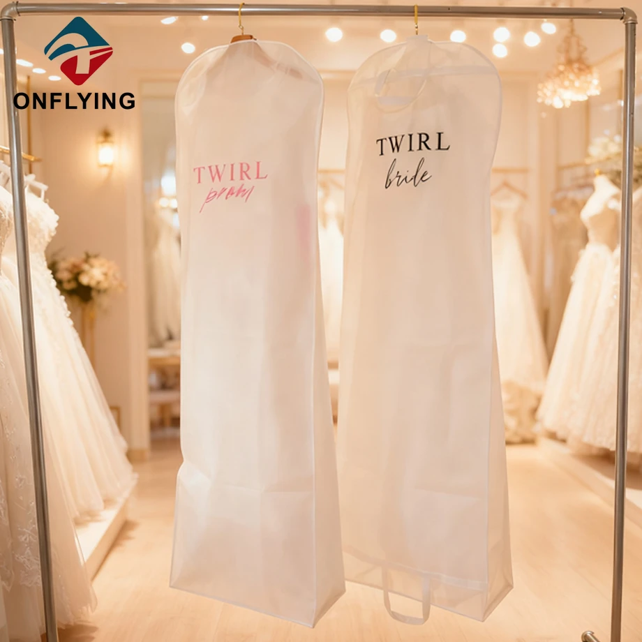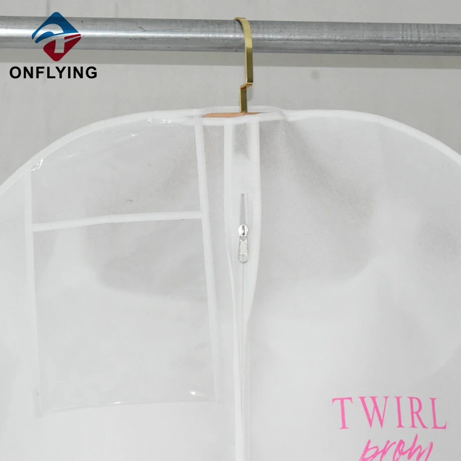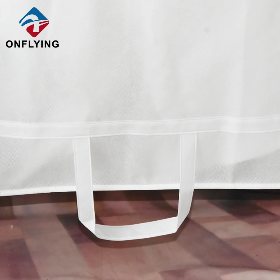 私たちオンフライング ガーメント アクセサリー インダストリアル リミテッドはプロフェッショナルです 中国ドレス収納袋工場。この再利用可能なカスタムロゴの白い不織布ドレス収納バッグは、スーツ、コート、衣類の保管と保護に使用されます。