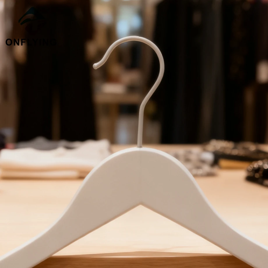 私たちオンフライング ガーメント アクセサリー インダストリアル リミテッドはプロフェッショナルです このスムーズなカスタム ロゴ ウェディング パーティー ホワイト ブライダル ドレス ハンガーは、シャツ ジャケット ブレザー 衣類の保管と展示に最適です。
