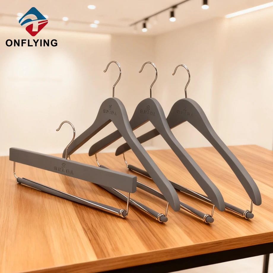 大量のウッドハンガーが終了しようとしています。それは、カスタムロゴを備えた肩にnonslipベルベットを備えた木製のスーツハンガーです。 -