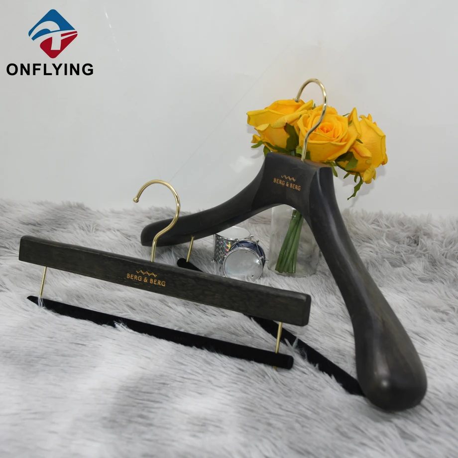 大量のウッドハンガーが終了しようとしています。それは、カスタムロゴを備えた肩にnonslipベルベットを備えた木製のスーツハンガーです。 -