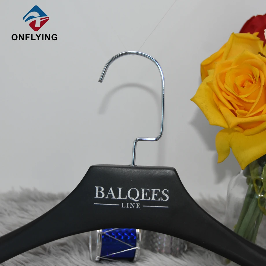 スタイリッシュな高品質の黒いドレス木製カスタマイズされたハンガー中国工場