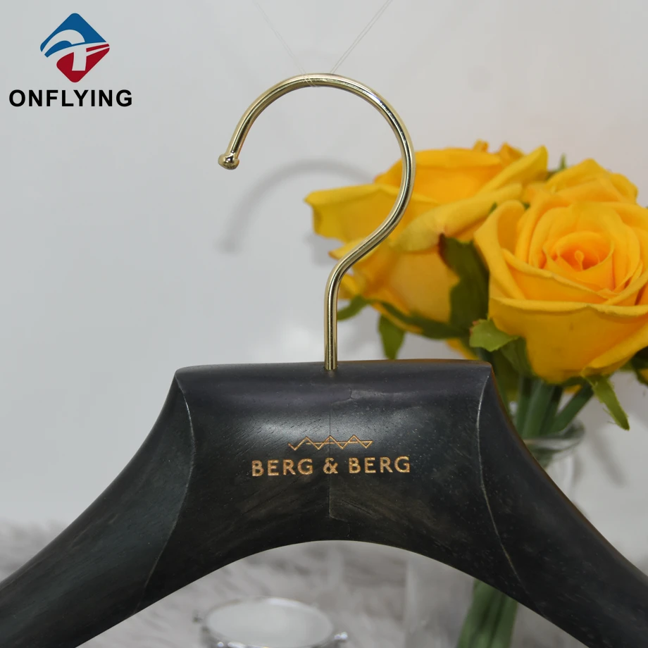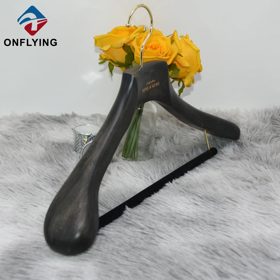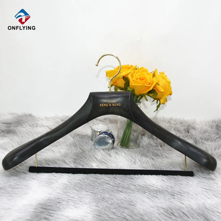 トップエンドガーメントスーツグレーオークウッドハンガーカスタムロゴ中国サプライヤー