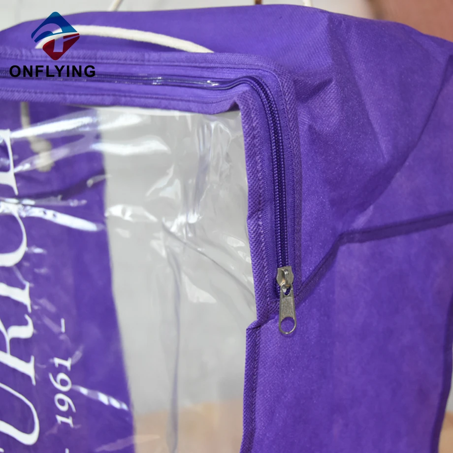 私たちオンフライング ガーメント アクセサリー インダストリアル リミテッドはプロフェッショナルです 中国キルト収納袋工場。この旅行移動ワードローブ透明衣類キルト収納バッグは、衣類やキルトの保管と保護に使用します。