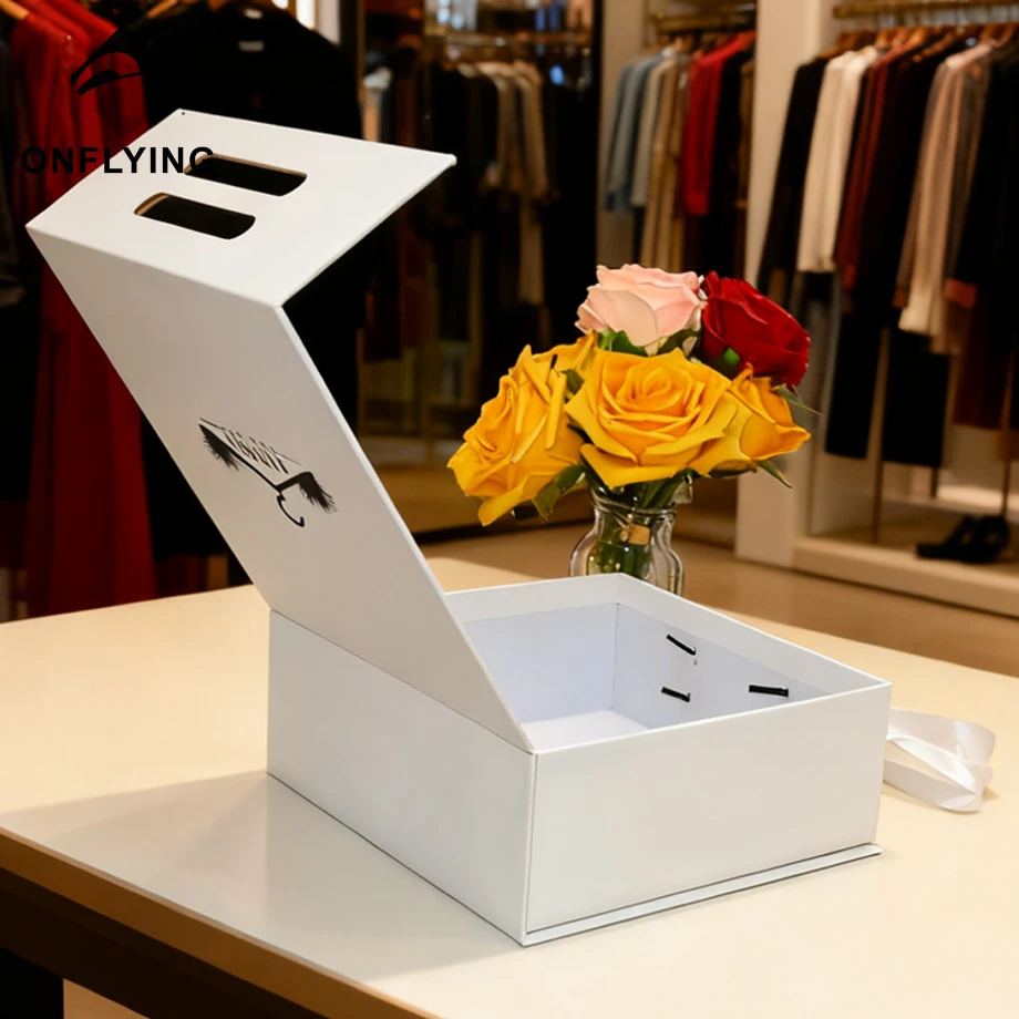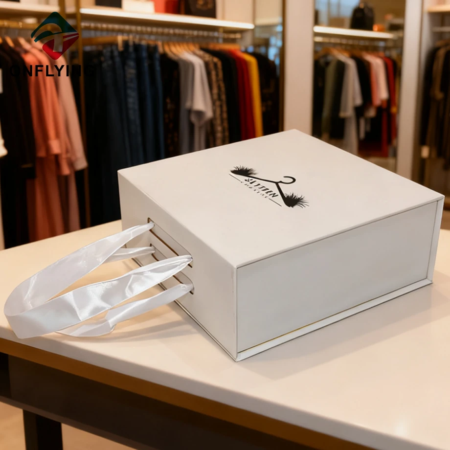 私たちオンフライング ガーメント アクセサリー インダストリアル リミテッドはプロフェッショナルです 包装カートンボックス中国工場。この白いカスタム硬質プリントロゴギフト包装カートンボックスは、ブティックショップ、保管場所などに最適です。