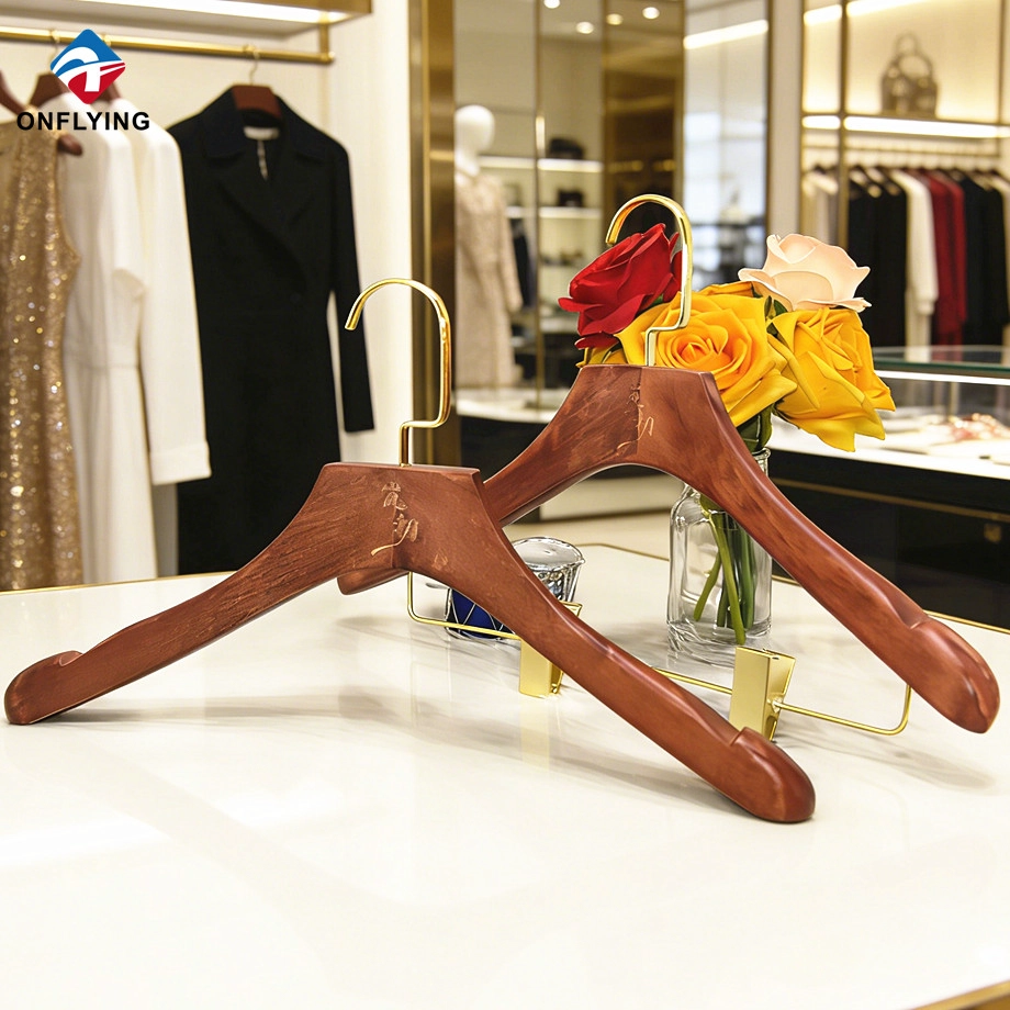 도매 최고 품질 맞춤형 럭셔리 브라운 드레스 나무 옷걸이 미끄럼 방지 제조 업체 중국 |