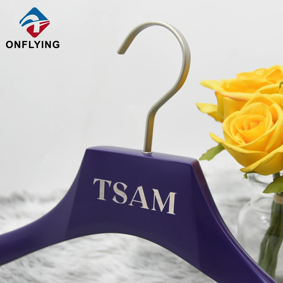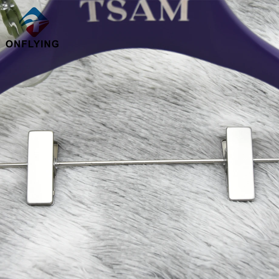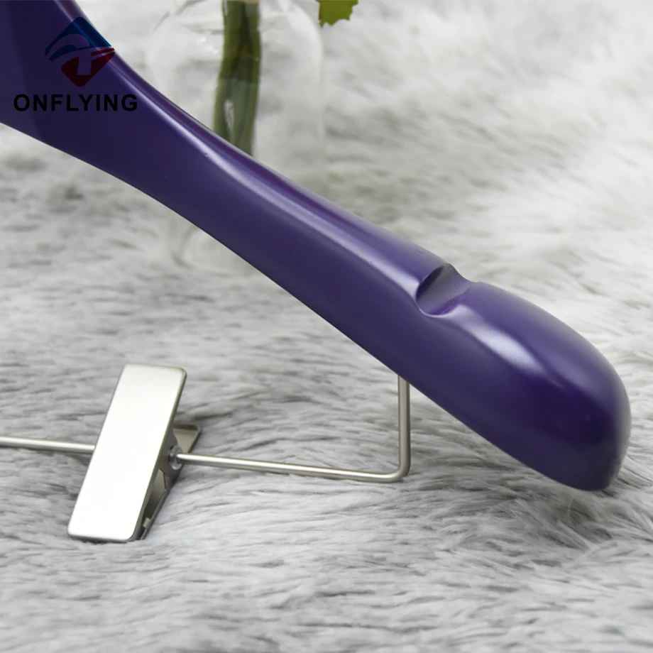 We Onflying Garment Accessory Industiral Limited is Professional Wooden Hanger With Clips China Supplier .This Boutique Exquisite Custom Purple Wooden Hanger With Clips is for coat jacket blazer pants skirts clothes storage and displaying.