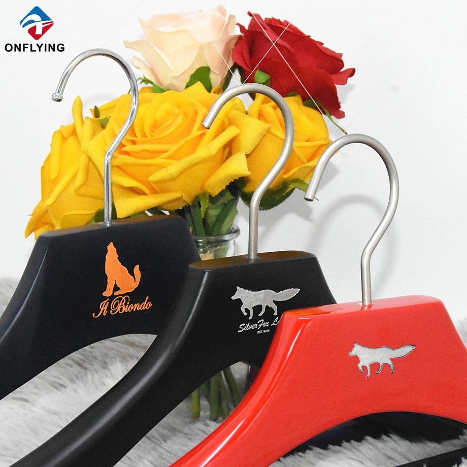 We Onflying Garment Accessory Industiral Limited is a China Wooden Suit Hanger supplier, This wooden hanger Custom Logo is for hanging clothes.