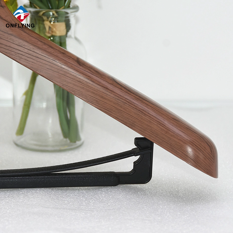 Durable Textured Imitate Wood PS Plastic Men's Garment Suit Clothing Hanger Factory China