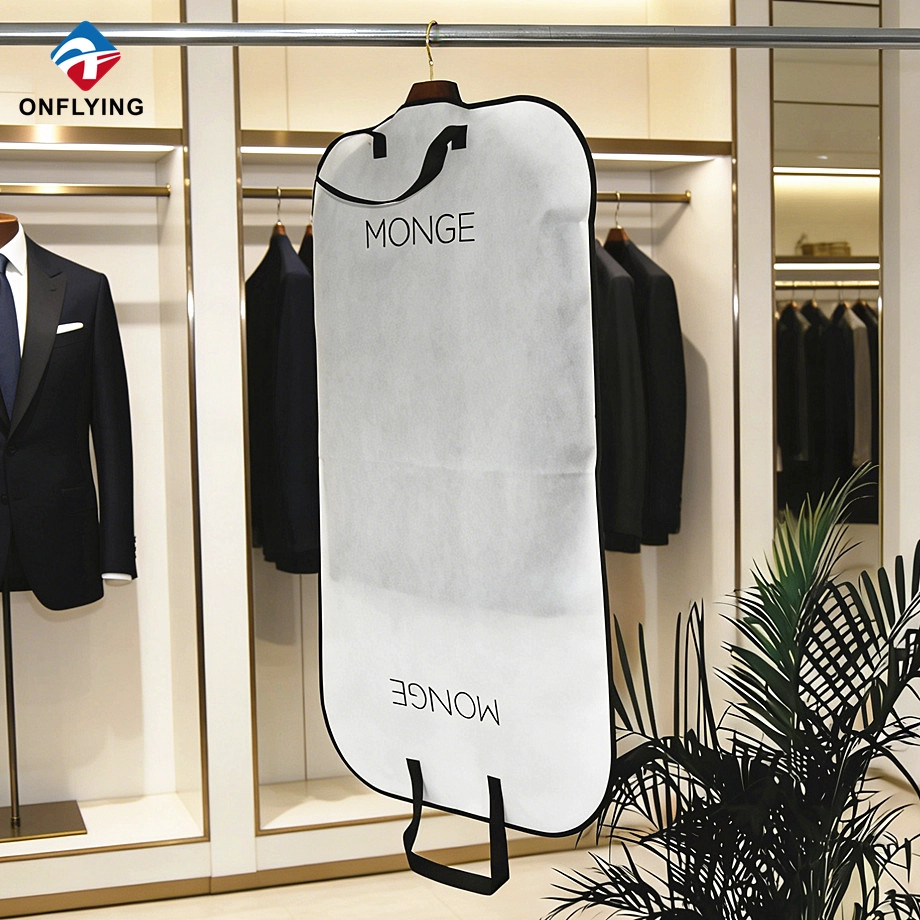 We Onflying Garment Accessory Industiral Limited is a China Suit Garment Bag manufacturer, This White Suit Garment Bag Custom Logo Covers is for clothes protection.