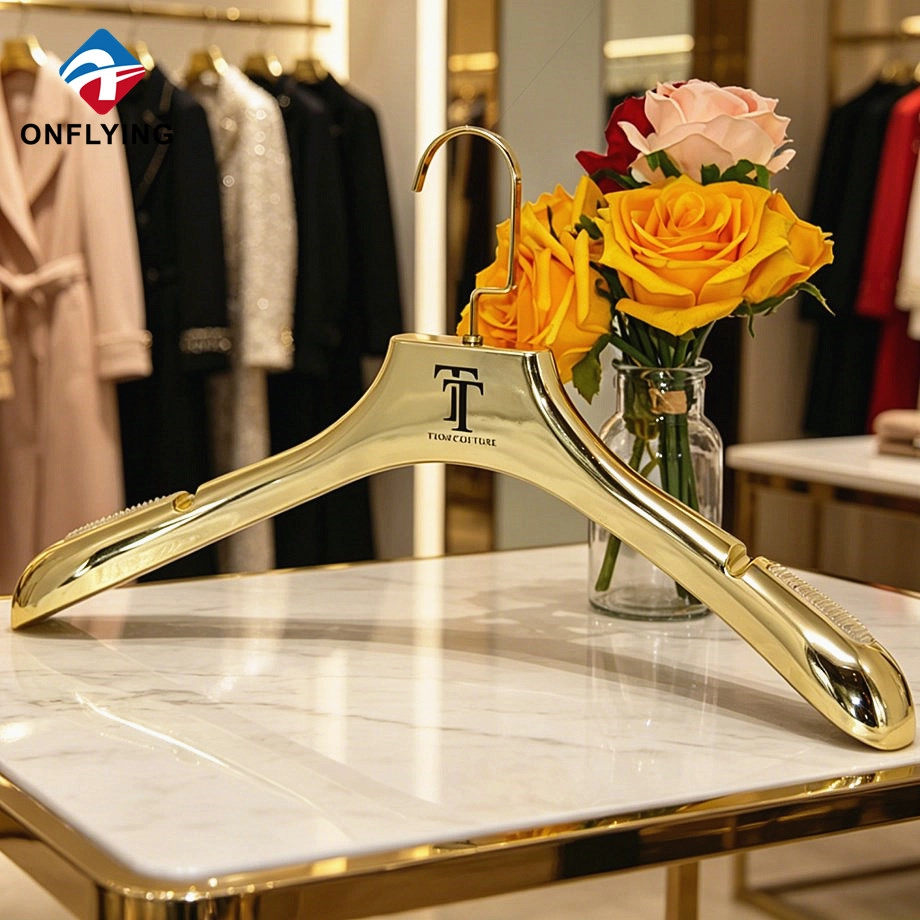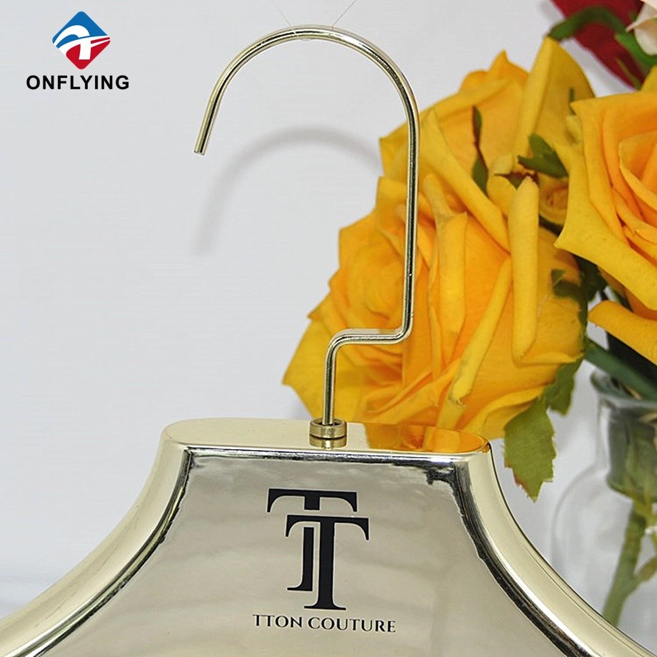 Luxury Bridal Store Lady Anti-slip Gloss Gold Dress Electroplate Hanger Manufacturer China |